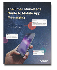Mobile Marketing The Email Marketer’s Guide to Mobile App Messaging With more marketing teams focused on reaching audiences across multiple channels, specialist roles like email marketers are broadening. There’s no denying email as a messaging channel is an efficient and cost-effective way to reach a broad audience—you can easily segment lists, capture data, measure results, and optimize strategies. As a marketer who understands the world of email, you’re uniquely positioned to bring value to your organization when it comes to mobile app messaging, too. Key Takeaways: Why email marketers are uniquely positioned to bring value to mobile app messaging programs How mobile apps are an opportunity for your most loyal customers to interact with your brand Advice for email marketers from mobile app experts on how to send a better message Download the guide The world’s leading brands are driving record-breaking engagement with Cordial Future-thinking brands choose Cordial to drive record-level customer engagement and revenue growth Get a demo
