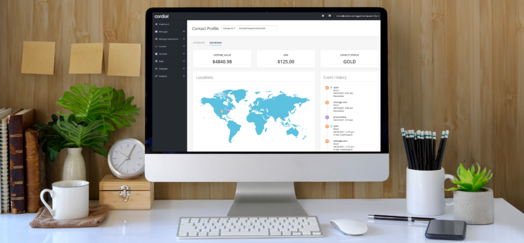 Return to All Resources Introducing Contact Dashboard: A visual, real-time view of your customer 3 Minute Read Product Recommended for you 3 ways to activate customer data for a differentiated shopping experience How top retailers are thinking about channels, data, and community Let’s talk tech: SFCC integration, user roles and permissions, and Smart-Code Assist CordialSend a better message. The best marketing teams have a remarkable grasp on what drives customer behavior and the type of messaging that resonates to influence acquisition, purchases, and loyalty. Still, even the most experienced marketers will struggle without access to the right customer data to inform their decisions. That’s why we’re excited to announce our new real-time Contact Dashboard, which helps you tap into powerful customer data to inform messaging strategy and spark creative campaign ideas. A holistic look at customer data and brand interactions Contact Dashboard includes the following components for each customer: Customizable Attribute Spotlights: Customize your top panels to highlight your most critical data points. Location map: Pins are placed based on the contact’s location gathered from geolocation attributes, as well as locations where events took place. You can hover over a location pin to see details. Events history: The last 30 events for the contact are shown in the events panel. Both system events and custom events are included. Order history: The last 10 orders by the contact are shown in the orders panel. You can see all orders by clicking on “View All Orders”. Cart items: When the contact has active cart items, they are shown in the cart panel (and update in real-time, so you’re always viewing the most up-to-date info!). Products purchased: This panel provides a quick visual snapshot of the customer and their purchasing preferences. Products purchased in the last 10 orders will be highlighted in an image reel. Data Supplements: Supplements give you the flexibility to store data points that extend outside of basic contact attributes, lists, or orders. For example, you can use a “Coupon Banks” supplement to see which coupons have been sent or reserved for the individual contact. Customize your Contact Dashboard overview based on your most important data points The top three panels are customizable, providing even deeper insights and more flexibility for Cordial users to easily view key data points for each individual contact. For example, if you’re a retail marketer trying to brainstorm a new campaign targeted to your most engaged consumers, you can tag contacts by loyalty status and pull that into one of your top Attribute Spotlight blocks. Then, you can surface that information in the top panels to personalize content blocks across your email, SMS, or mobile app messaging. Uncover trends to inform your marketing strategy With key contact data surfaced clearly and visually in the Contact Dashboard, you can start to recognize purchase and activity patterns. These insights will help you understand what motivates a customer to convert or purchase and tailor their next message or promotion accordingly. Going back to our “Loyalty Status” example from earlier, let’s say your team wants to send a new promotion to Gold level (or high purchase volume) customers. After running an Audience Builder query for “Gold Level” contacts, you can browse individual contact profiles. Maybe you notice that many customers have similar items in their cart (sandals) and see a ton of location activity occurring in the Southeast US. This pattern might inspire an idea to run a “warm weather footwear” campaign for the Southeast that would be different than what you might send to customers in Boston – where it’s still freezing outside. Essentially, these insights can uncover new trends or make you think about your customer in a way that isn’t obvious at first glance. Want to learn more about how Cordial combines robust data capabilities with top-notch messaging tools to help marketing teams increase revenue and build customer loyalty? Speak with a Cordial expert today. Our best content to your inbox, every month Picked For You Article Unseen data limitations may be holding you back from breaking through with customers There is incredible value in first-party data that is used intelligently. But are you really… Article Timing is everything: 3 tips for using Cordial Quiet Hours Marketers know better than anyone—there’s a time and a place for every message. Even if… Future-thinking brands choose Cordial to drive record-level customer engagement and revenue growth Get a demo