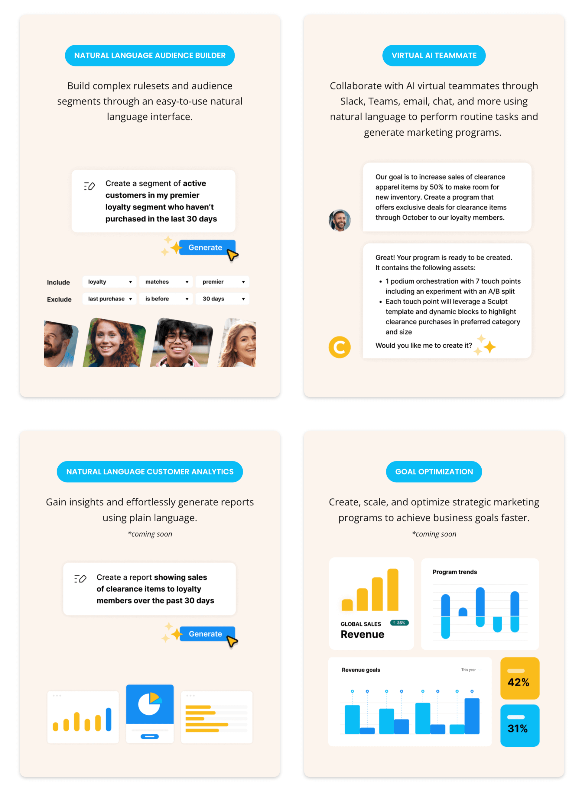 Return to All Resources What if your marketing platform was as effortless as speaking to another marketer? 3 Minute Read AI Recommended for you Harnessing the power of data shape: How Cordial powers human understanding at scale How AI will revolutionize the world…and retail marketing The end of generic marketing: Flexible data, embracing AI, and superior professional services Sebastian DuerrGenerative AI Engineer In a world where AI hype is everywhere, Cordial is creating something far more powerful – human understanding at scale. Cordial AI revolutionizes the way marketers extract strategic value from their data by harnessing the power of natural language. With Cordial AI, marketers can ask questions, explore insights, and interact with their data using plain language, breaking down the barriers of technical complexity. As I discussed in a recent webinar , Large Language Models (LLMs) enable intuitive questioning against data using everyday language. Sophisticated SQL then translates these natural language queries into accessible insights without the need for specialized technical skills. Cordial delivers such capabilities for marketers through an intuitive technology designed for natural conversation. Without technical expertise, marketers can explore campaign metrics, audiences, and other key data through everyday language—as effortless as speaking to another marketer. Natural language: The key to unlocking marketing data At Cordial, the seamless connection of natural language and data analytics democratizes marketing data, making it accessible to all marketers, no matter their technical level. Marketers can ask questions or provide instructions in plain language, transcending the need for specialized knowledge in SQL or reliance on technical analysts. This paradigm shift enables marketers from diverse backgrounds to access and analyze data, enhancing the reach and utility of data analytics. Example: A marketer asks, “Create a segment of active customers in my premier loyalty segment who haven’t purchased in the last 30 days.” On legacy platforms, this query would require proficiency in SQL. However, Cordial’s natural language interface translates this request into an SQL query, not only yielding straightforward answers but also automatically creating the segment for immediate use in your marketing campaigns, all without the need for complex technical skills. A platform that understands marketers Cordial AI is not another complex platform for you to learn. We believe that marketers should get to focus on what they do best—creating impactful strategies and compelling content. Cordial’s focus on enabling marketers allows the platform to deliver unique advantages, including: Pre-built models: Unlike generic query tools, Cordial provides pre-built models tailored to common marketing questions and KPIs. This enables marketers to leverage natural language immediately, without the need for extensive setup or customization. Cross-channel view: Cordial’s strength in data unification ensures that analysis isn’t siloed. Natural language queries can seamlessly consider email engagement alongside social interactions or website behavior, providing a holistic view of customer interactions. Actionable results: Insights are directly integrated with Cordial’s Orchestration Builder. Upon identifying a high-potential segment, marketers can build and launch targeted campaigns with just a few clicks, streamlining the process from insights to execution. This means you can go from asking a question to executing a targeted campaign in minutes, not days or weeks. The integration of natural language processing and SQL in Cordial AI represents a paradigm shift in the way marketers leverage and understand data. By combining the power of natural language processing with the structured data capabilities of SQL, Cordial is enabling marketers to unlock unprecedented insights, optimize campaigns, and achieve measurable results through human understanding at scale. Learn more about Cordial AI. Where natural language and marketing converge Our best content to your inbox, every month Picked For You Article How AI will revolutionize the world…and retail marketing AI is emerging as a driving true platform shift that will redefine and enhance many… Video Harnessing the power of data shape: How Cordial powers human understanding at scale Data is often referred to as the new oil. But it’s not just about the… Future-thinking brands choose Cordial to drive record-level customer engagement and revenue growth Get a demo